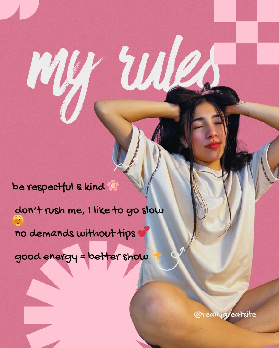 ইরোটিক ড্যান্স, ম্যাসেজ, হিল, ফ্ল্যাশিং, ডগি স্টাইল, আহেগাও, স্প্য াঙ্কিং, ক্যামেল টো, ফিঙ্গারিং, ডার্টি টক, স্ট্রিপটিজ, ফেসসিটিং, ব্লোজব, হস্তমৈথুন, টপলেস, টোয়ার্ক, আপস্কার্ট, কামশট, কাকোল্ড, লেদার, ডিলডো বা ভাইব্রেটর, ফুট ফেটিশ, হস্তমৈথুনের নির্দেশিকা, সেক্স টয়, নিপল টয়, অর্গাজম, ফুটজব, কাউগার্ল